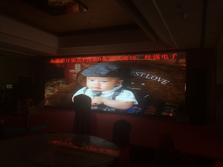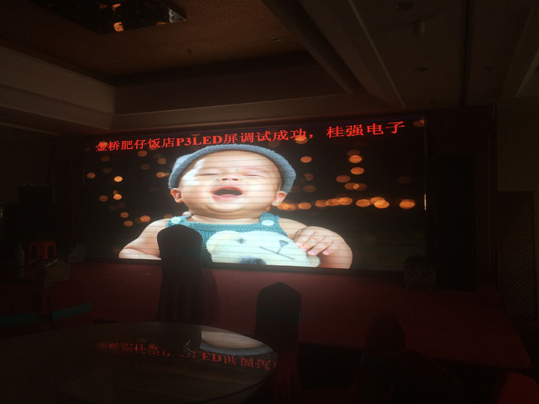 2、案例名稱:項目名稱命名:南寧市金橋肥仔飯店P3全彩LED顯示屏